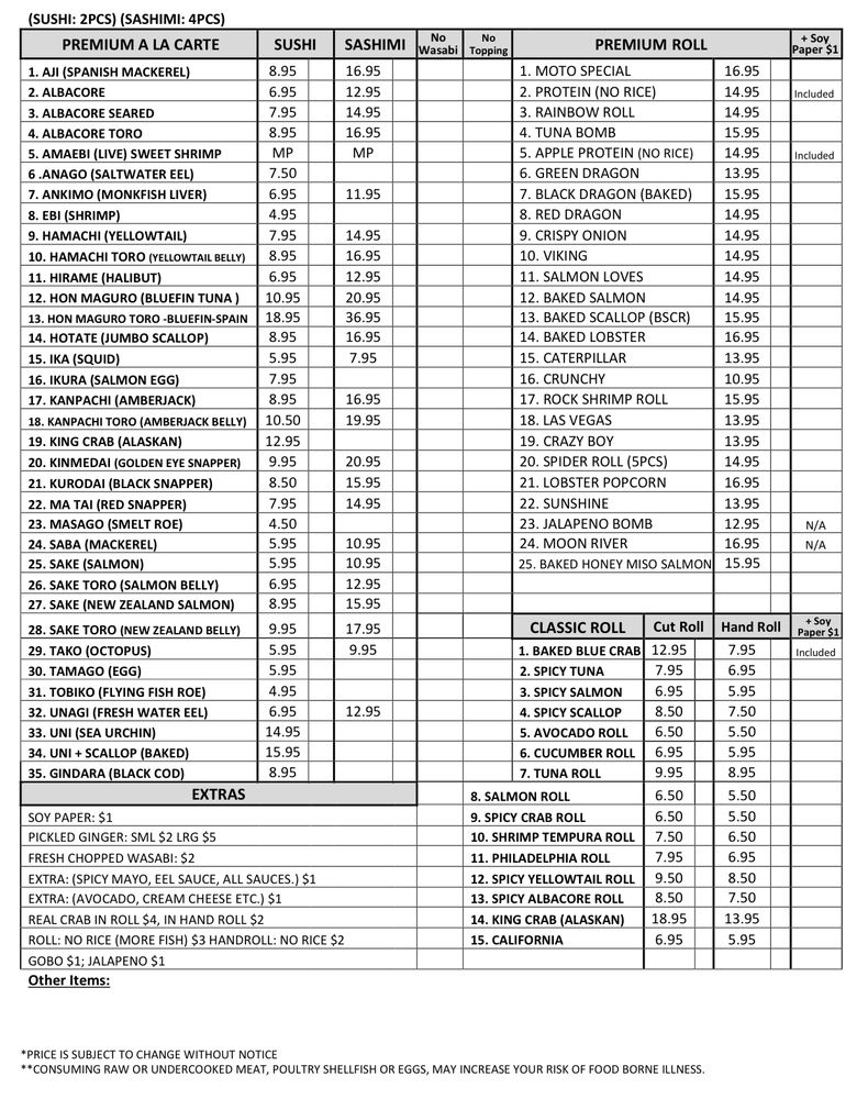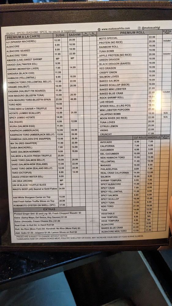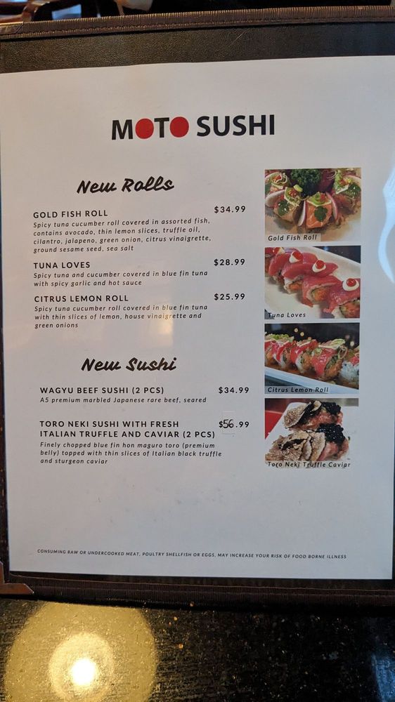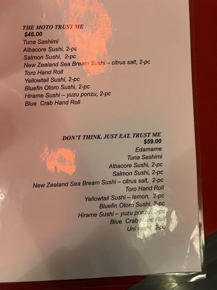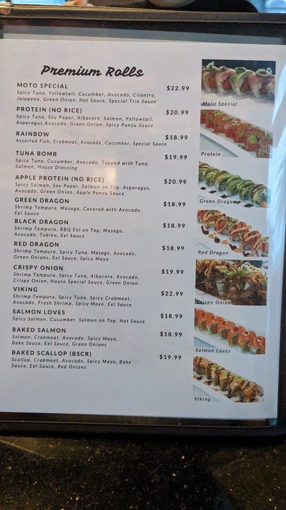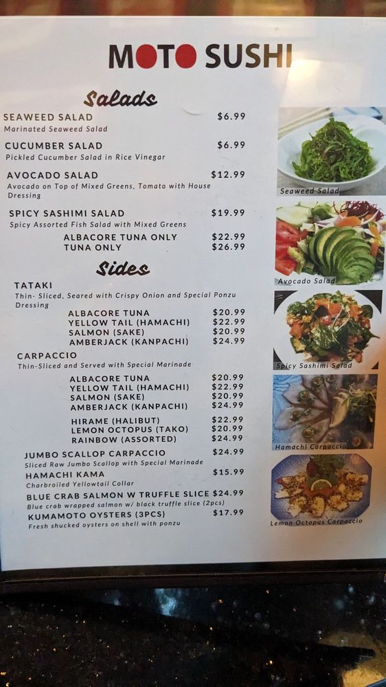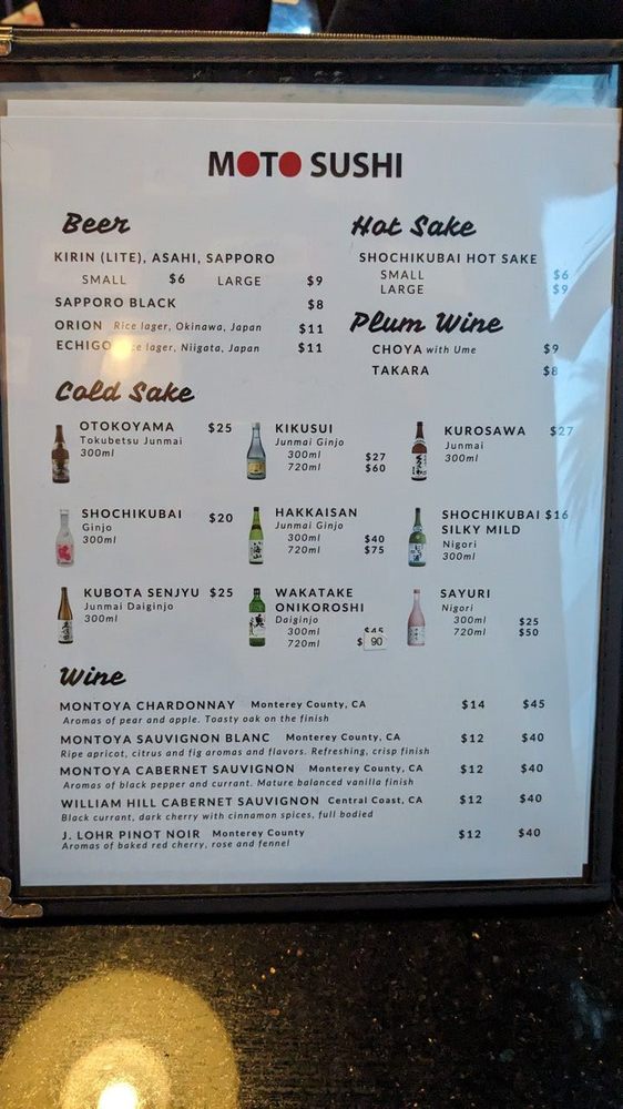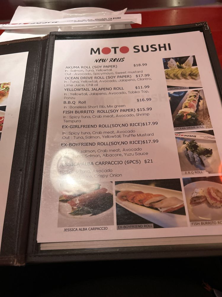 Moto Sushi, located in Glendale, CA, offers a wide range of Japanese cuisine in a casual and quiet setting. The menu includes appetizers like Deep Fried Tofu and BBQ Short Ribs, fresh salads, and flavorful soups like Miso and Spicy Udon. Customers praise the impeccable quality of the sushi, with options like the "Trust Me" platter receiving rave reviews. The chef's expertise shines through in every dish, with fresh ingredients and attention to detail. The restaurant's warm and welcoming atmosphere, along with attentive service, make for a truly delightful dining experience. Overall, Moto Sushi stands out for its top-tier sushi, flavorful dishes, and friendly staff, making it a must-visit spot for sushi lovers in the area.