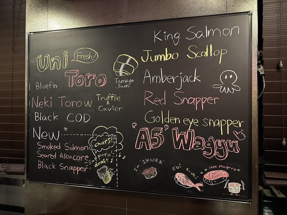 in: spicy albacore, avocado/yellowtail on top with yuzu sauce