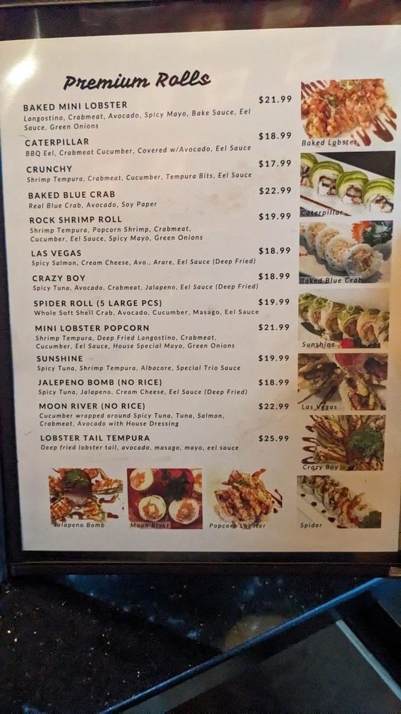 Langostino, crabmeat, avocado, spicy mayo, bake sauce, eel sauce, green onions.